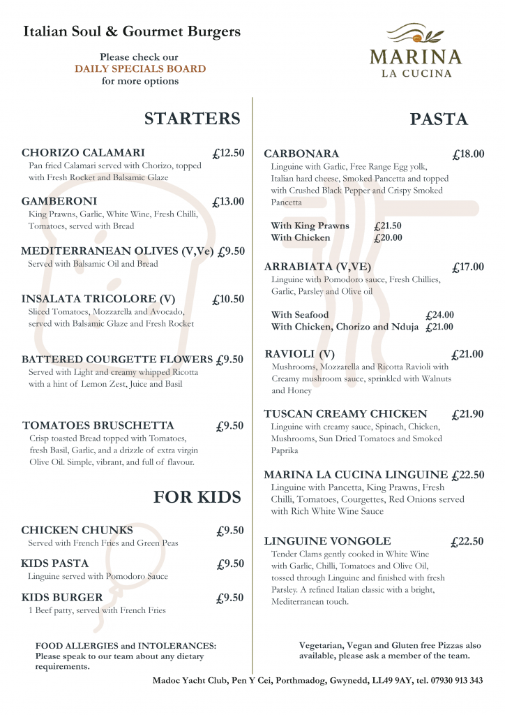 Welcome to Marina la Cucina, where culinary delights meet stunning waterfront views! Nestled at the Pen y Cei Madoc yacht club in Porthmadog, we serve fresh, innovative dishes that celebrate local flavors. Come savor the experience today!